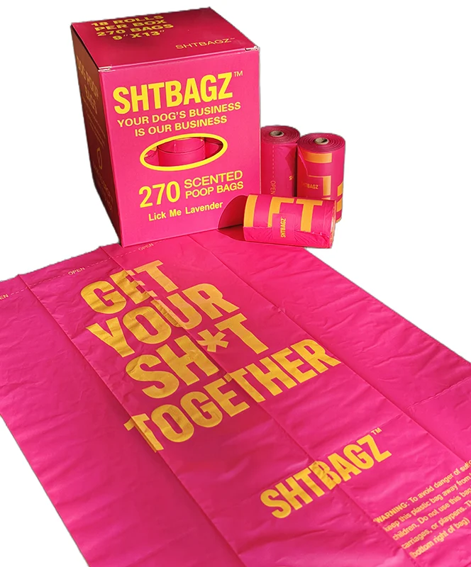 Shop Each Box Contains: 270 Hot pink bags (18 rolls) Sassy phrases on each bag One end says open, the other doesn’t Plant-based FREE SHIPPING for 3+ box orders Get A Box $20.00 SHTBAGZ quantity Add to cart